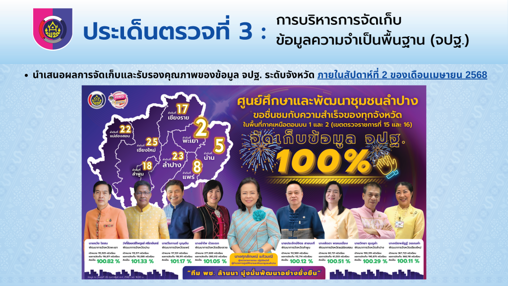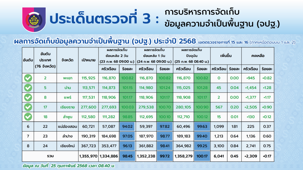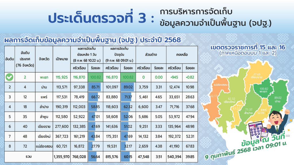 ผลการบริหารการจัดเก็บข้อมูลความจำเป็นพื้นฐาน (จปฐ.) ประจำปี 2568