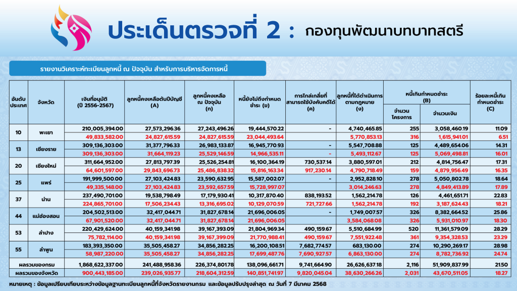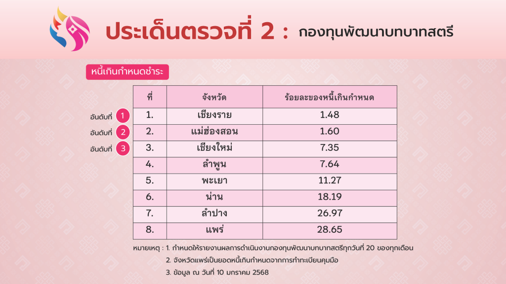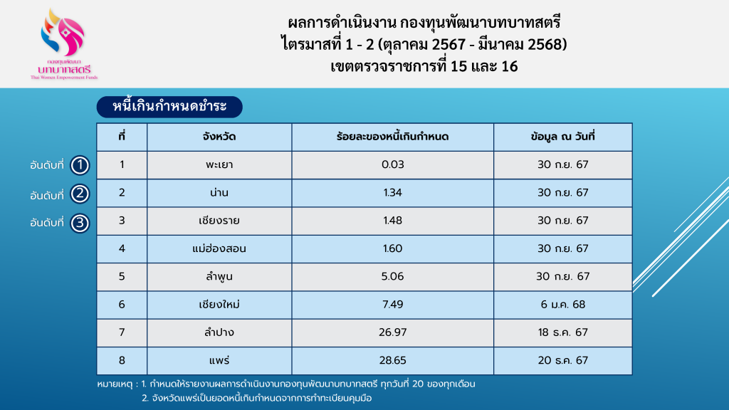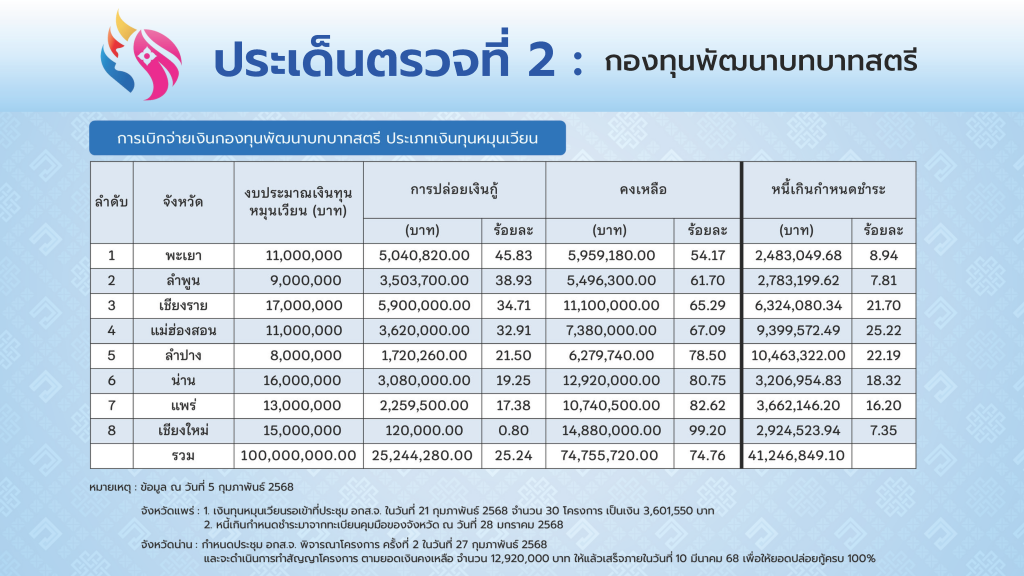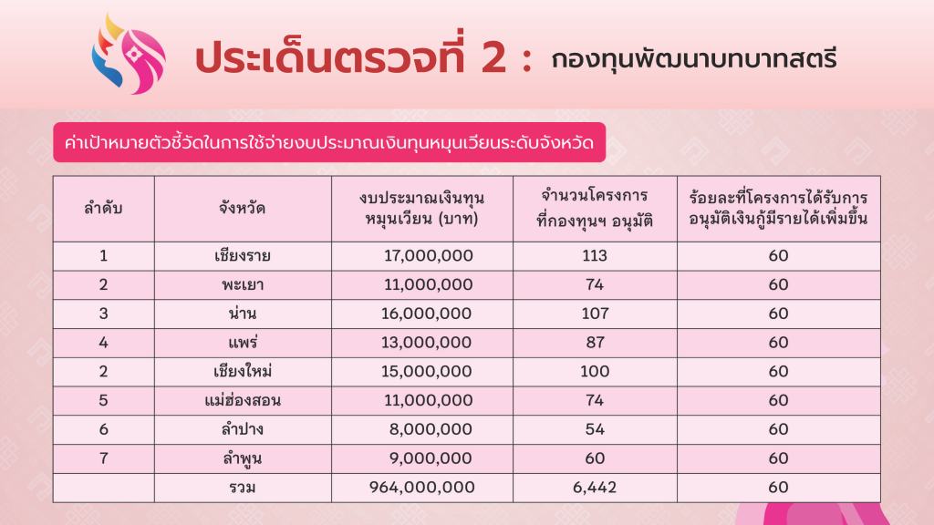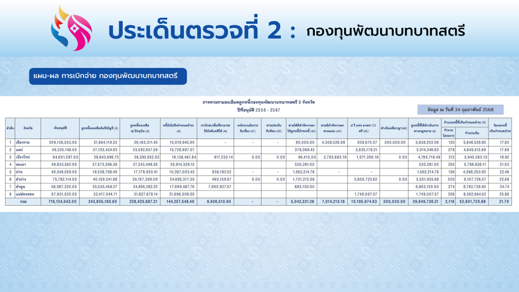 ผลการดำเนินงานกองทุนพัฒนาบทบาทสตรี