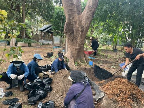 นางศุภลักษณ์ แก้วมณี ผู้ตรวจราชการกรม ปฏิบัติหน้าที่ผู้อำนวยการศูนย์ศึกษาและพัฒนาชุมชนลำปาง มอบหมายให้ทีมมดงานปรับปรุงภูมิทัศน์ ตัดหญ้าและตกแต่งพื้นที่ภายในศูนย์ศึกษาและพัฒนาชุมชนลำปาง ให้โล่งเตียน สวยงามสบายตา พร้อมทั้งดำเนินกิจกรรมผสมดินปลูกบริเวณเรือนเพาะชำ และกิจกรรมปลูกผักสวนครัวบริเวณฐานเรียนรู้ "สีสันจากพฤกษา ลงผืนผ้าด้วยใจรักษ์" ร่วมกับบุคลากรกลุ่มงานวิจัยและพัฒนาชุมชนเชิงพื้นที่ เพื่อสร้างบรรยากาศแห่งการเรียนรู้ที่สดชื่น เป็นการแสดงพลังของทีมงาน ศพช.ลำปาง ที่พร้อมใจกันสร้างสรรค์พื้นที่ของเราให้เป็น "บ้าน" ที่น่าอยู่ และเป็น "แหล่งเรียนรู้มีชีวิต" สำหรับทุกคน ตอกย้ำความมุ่งมั่นในการเป็นศูนย์ฝึกอบรมมาตรฐานแห่งล้านนาอย่างแท้จริง