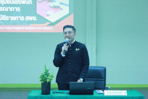 2) บรรยายบทบาทภารกิจของศูนย์ศึกษาและพัฒนาชุมชนในการขับเคลื่อนแผนฯ และทบทวนทิศทางการขับเคลื่อนงานพัฒนาชุมชน ปีงบประมาณ พ.ศ. 2569 โดยนายนพรัตน์ ธำรงทรัพย์ ผู้อำนวยการกองแผนงาน กรมการพัฒนาชุมชน