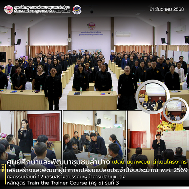 วันที่ 21 ธันวาคม 2568 ณ หอประชุมทิพย์ช้าง ศูนย์ศึกษาและพัฒนาชุมชนลำปาง