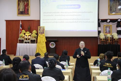 - หัวข้อ "กรอบแนวทางโครงการเสริมสร้างและพัฒนาผู้นำการเปลี่ยนแปลงฯ ระดับตำบล" โดย นางจุฬาลักษณ์ เอ่งฉ้วน ผู้อำนวยการกลุ่มงานตรวจราชการ