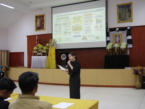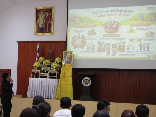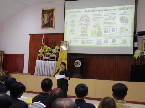 ทั้งนี้ ในช่วงเช้าเป็นการบรรยายให้ความรู้ในหัวข้อ "การส่งเสริมประชาชนนำเงินทุนไปประกอบอาชีพเพื่อสร้างรายได้(กิจกรรมเครือข่ายกลุ่มออมทรัพย์เพื่อการผลิต)" โดยได้รับเกียรติจาก
