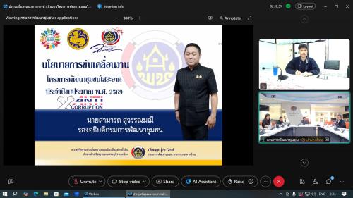 นายสยาม ศิริมงคล อธิบดีกรมการพัฒนาชุมชน มอบหมายให้ นายสามารถ สุวรรณมณี รองอธิบดีกรมการพัฒนาชุมชน เป็นประธานการประชุมชี้แจงแนวทางการดำเนินงานโครงการพัฒนาชุมชนใสสะอาด ประจำปีงบประมาณ พ.ศ. 2569 พร้อมทั้งมอบนโยบายการขับเคลื่อนงานโครงการพัฒนาชุมชนใสสะอาด ณ ห้องศูนย์ข้อมูลกลางเพื่อการตัดสินใจ (War Room) ชั้น 5 กรมการพัฒนาชุมชน