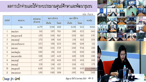 ศพช.ลำปาง ร่วมการประชุมคณะกรรมการติดตามเร่งรัดการใช้จ่ายงบประมาณรายจ่าย ประจำปีงบประมาณ พ.ศ. 2569 ของกรมการพัฒนาชุมชน ครั้งที่ 1/2569