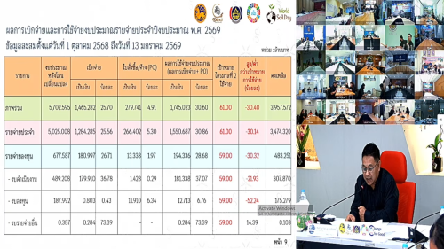 นายสยาม ศิริมงคล อธิบดีกรมการพัฒนาชุมชน มอบหมายให้ นายสามารถ สุวรรณมณี รองอธิบดีกรมการพัฒนาชุมชน เป็นประธานการประชุมคณะกรรมการติดตามเร่งรัดการใช้จ่ายงบประมาณรายจ่าย ประจำปีงบประมาณ พ.ศ. 2569 ครั้งที่ 1/2569 เพื่อติดตามผลการเบิกจ่ายและการใช้จ่ายงบประมาณทั้งจากส่วนกลางและส่วนภูมิภาค ณ ห้องประชุม War room ชั้น 5 กรมการพัฒนาชุมชน