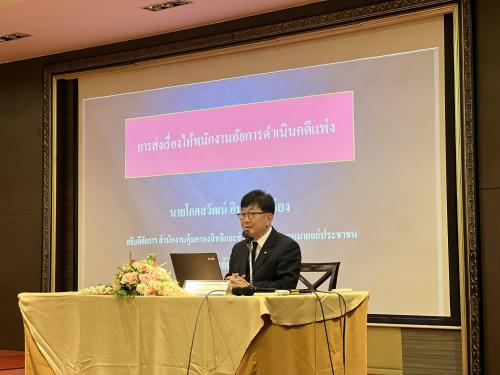 - การบรรยายหัวข้อ "การส่งเรื่องให้พนักงานอัยการดำเนินคดีแพ่ง” โดยนายโกศลวัฒน์ อินทุจันทร์ยง อธิบดีอัยการ สำนักงานคุ้มครองสิทธิและช่วยเหลือทางกฎหมายแก่ประชาชน สำนักงานอัยการสูงสุด