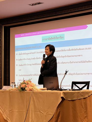- การบรรยายหัวข้อ "การบังคับคดีแพ่งตามคำพิพากษาของศาล การสืบทรัพย์” โดยนางบุษกร อักษรพาลี ผู้เชี่ยวชาญเฉพาะด้านการบังคับคดีแพ่ง กรมบังคับคดี
