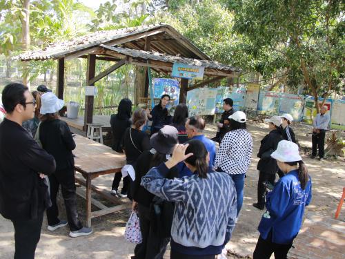 พร้อมกันนี้ นายเกรียงไกร สิงห์แก้ว ผู้อำนวยการกลุ่มงานวิจัยและพัฒนาชุมชนเชิงพื้นที่ ได้บรรยายให้ความรู้แก่กลุ่มผู้เข้าศึกษาดูงาน เพื่อเตรียมความพร้อมด้านความรู้เบื้องต้นก่อนเข้าสู่ฐานการเรียนรู้ทั้ง 12 ฐาน แสดงถึงความใส่ใจในการให้ความรู้ ส่งเสริมค่านิยมการอนุรักษ์ และเสริมสร้างสัมพันธภาพอันดีระหว่างองค์กรและภาคีเครือข่าย