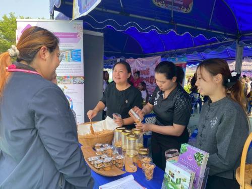 ภายในงานผู้ว่าราชการจังหวัดลำปาง พร้อมด้วยคณะกรรมการเหล่ากาชาดจังหวัด และหัวหน้าส่วนราชการ ได้ร่วมกันมอบถุงยังชีพและสิ่งของอุปโภคบริโภค ให้แก่ผู้ด้อยโอกาสและผู้ยากไร้ในพื้นที่ เพื่อบรรเทาความเดือดร้อนในเบื้องต้น โดย ศพช.ลำปาง ร่วมจัดกิจกรรม แบ่งปันเมล็ดพันธุ์พืชผักสวนครัว ตามแนวโครงการอนุรักษ์พันธุกรรมพืชอันเนื่องมาจากพระราชดำริ สมเด็จพระเทพรัตนราชสุดาฯ สยามบรมราชกุมารี (อพ.สธ.) การแปรรูปผลิตภัณฑ์จากสมุนไพร ได้แก่ น้ำมันเขียว น้ำมันไพล สเปรย์ตะไคร้หอมไล่ยุง ถุงหอมสมุนไพร นอกจากนี้ยังมีผลิตภัณฑ์ชุมชนจากการส่งเสริมการประกอบอาชีพ ข้าวแต๋นปรุงรส ส่งเสริมการเรียนรู้และแบ่งปันแก่ประชาชนในพื้นที่