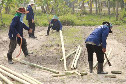 นางศุภลักษณ์ แก้วมณี ผู้ตรวจราชการกรม ปฏิบัติหน้าที่ผู้อำนวยการศูนย์ศึกษาและพัฒนาชุมชนลำปาง พร้อมด้วยผู้อำนวยการกลุ่มงาน หัวหน้าฝ่าย และเจ้าหน้าที่ศูนย์ศึกษาและพัฒนาชุมชนลำปาง ดำเนินกิจกรรมดังกล่าว ณ พื้นที่ต้นแบบ “โคก หนอง นา อารยเกษตร” โดยร่วมกันปรับปรุงภูมิทัศน์และพัฒนาเพื่อจัดเตรียมพื้นที่ "แปลงผัก 3 ระยะ ฝ่าวิกฤต สร้างคลังอาหารที่ยั่งยืน" เพื่อเป็นการสนับสนุนการเพาะปลูกในระดับครัวเรือน ในการขับเคลื่อนนโยบายกรมการพัฒนาชุมชนในการรับมือวิกฤตเศรษฐกิจและสังคม โดยน้อมนำ หลักปรัชญาของเศรษฐกิจพอเพียง มาประยุกต์ใช้ ผ่านกระบวนการมีส่วนร่วม “เอามื้อสามัคคี” เน้นการลงมือทำจริงและเรียนรู้ร่วมกัน