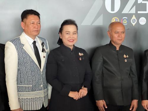 ทั้งนี้ ก่อนเข้าสู่พิธี ผู้ร่วมงานได้ร่วมยืนสงบนิ่ง น้อมรำลึกในพระมหากรุณาธิคุณของสมเด็จพระนางเจ้าสิริกิติ์ พระบรมราชินีนาถ พระบรมราชชนนีพันปีหลวง พระผู้ทรงสืบสานภูมิปัญญาผ้าและงานหัตถกรรมหัตถศิลป์ และพระราชทานเป็นพระราชมรดกของแผ่นดินให้แก่ปวงชนชาวไทย