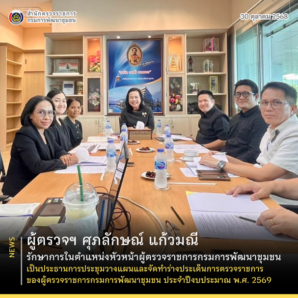 วันที่ 30 ตุลาคม 2568 เวลา 13.30 น. ณ ห้องประชุมสำนักตรวจราชการ ชั้น 3 กรมการพัฒนาชุมชน