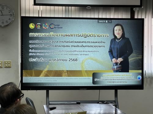 วันนี้ (5 พฤศจิกายน 2568) เวลา 09.30 น. ณ ห้องประชุมสำนักงาน พัฒนาชุมชนจังหวัดเชียงใหม่ (ชั้น 5) ศาลากลางจังหวัดเชียงใหม่ นางศุภลักษณ์ แก้วมณี ผู้ตรวจราชการกรม ปฏิบัติหน้าที่ผู้อำนวยการศูนย์ศึกษาและพัฒนาชุมชนลำปาง รักษาการในตำแหน่งหัวหน้าผู้ตรวจราชการกรม เป็นประธานการประชุมตรวจติดตามสนับสนุนการปฏิบัติราชการตามประเด็นการตรวจราชการ ประจำเดือนพฤศจิกายน 2568 พร้อมด้วยนางจุฬาลักษณ์ เอ่งฉ้วน ผู้อำนวยการกลุ่มงานตรวจราชการ และคณะฯ โดยมีนางณิชพลัฏฐ์ วรรณคำ พัฒนาการจังหวัดเชียงใหม่ ผู้อำนวยการกลุ่มงาน พัฒนาการอำเภอ และเจ้าหน้าที่สำนักงานพัฒนาชุมชนจังหวัดเชียงใหม่ รับการตรวจติดตาม นำเสนอผลการดำเนินงาน ปัญหา อุปสรรค และรับฟังคำแนะนำในการปฏิบัติราชการ เพื่อพัฒนางานของสำนักงานพัฒนาชุมชนจังหวัด ให้บรรลุตามเป้าหมายฯ อย่างมีประสิทธิภาพ