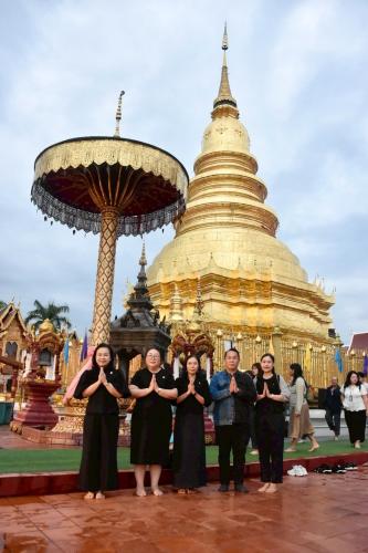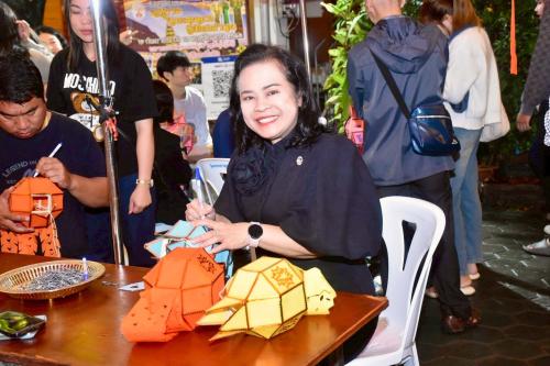 วันนี้ (5 พฤศจิกายน 2568) เวลา 18.00 น. ณ บริเวณวัดพระธาตุหริภุญชัย อ.เมืองฯ จ.ลำพูน นางศุภลักษณ์ แก้วมณี ผู้ตรวจราชการกรม ปฏิบัติหน้าที่ผู้อำนวยการศูนย์ศึกษาและพัฒนาชุมชนลำปาง รักษาราชการในตำแหน่ง หัวหน้าผู้ตรวจราชการกรม แต่งกายผ้าไทยร่วมงานประเพณีลอยกระทง เทศกาลโคมแสนดวง จังหวัดลำพูน ประจำปี 2568 เพื่อสืบสานประเพณี วัฒนธรรมอันดีงามของชาวไทย และตรวจเยี่ยม ให้กำลังใจกลุ่มผู้ผลิต ผู้ประกอบการ OTOP ที่มาร่วมออกร้านจำหน่ายสินค้าภายในงาน