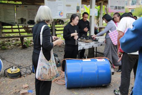 ในส่วนของกิจกรรมภาคบ่าย เป็นการออกแบบหลักสูตรการเรียนรู้โรงเรียนเศรษฐกิจพอเพียง พร้อมฝึกปฏิบัติ โดยได้รับเกียรติจาก วิทยากรจากวิสาหกิจชุมชนกลุ่มข้าวทิพย์ช้าง อำเภอห้างฉัตร จังหวัดลำปาง และกิจกรรมเสริมหลักสูตร “KM Café On Tour” ภายใต้แนวคิด “รู้จากห้องประชุมสู่พื้นที่เรียนรู้จริง” ในหัวข้อการทำเตาเผาถ่าน 200 ลิตร แบบไร้ควัน ฐานเรียนรู้ฅนเอาถ่าน เพื่อเสริมสร้างทักษะอาชีพและต่อยอดองค์ความรู้สู่การปฏิบัติจริง