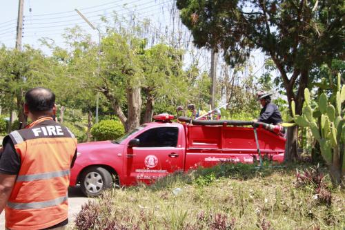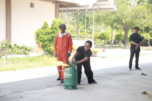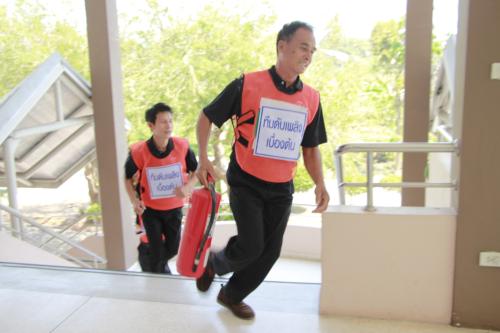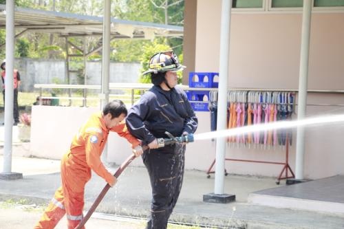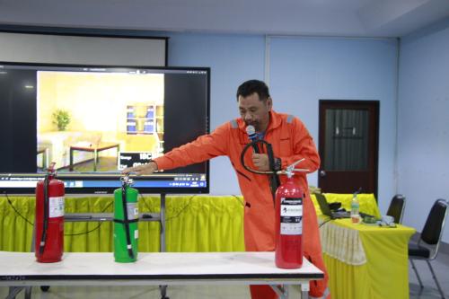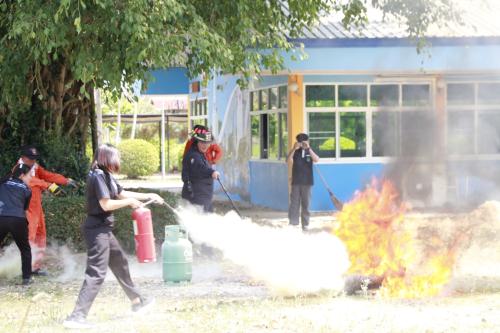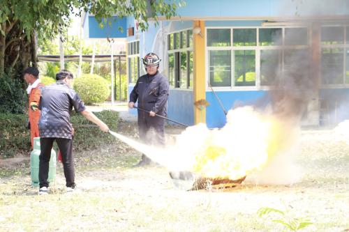วิชาที่ 4 ฝึกปฏิบัติการใช้ถังเคมีดับเพลิง การฝึกซ้อมดับเพลิงและฝึกซ้อมอพยพหนีไฟ โดยจำลองเหตุการณ์และฝึกซ้อมเสมือนเหตุการณ์จริง โดย นายพงศธร พงศ์พันธ์งาม ตำแหน่ง นักจัดการงานทั่วไปปฏิบัติการ สังกัด งานป้องกันและบรรเทาสาธารณภัย เทศบาลเมืองเขลางค์นคร