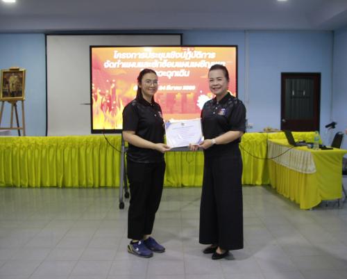 วิชาที่ 3 การบรรยายหัวข้อ "แผนการดับเพลิงและแผนการอพยพหนีไฟ" โดย นายรัฐพงษ์ วิงวอน ตำแหน่ง เจ้าพนักงานป้องกันและบรรเทาสาธารณภัยชำนาญงาน สังกัด งานป้องกันและบรรเทาสาธารณภัย เทศบาลเมืองเขลางค์นคร