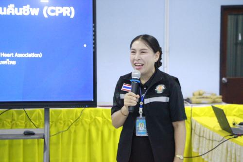 วิชาที่ 1 การบรรยายหัวข้อ "การปฐมพยาบาลเบื้องต้นและการช่วยฟื้นคืนชีพ (CPR)" โดย นางลาวรรณ ทิพย์วังเมฆ ตำแหน่ง พยาบาลวิชาชีพชำนาญการ สังกัด กองสาธารณสุขและสิ่งแวดล้อม เทศบาลเมืองเขลางค์นคร