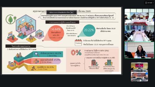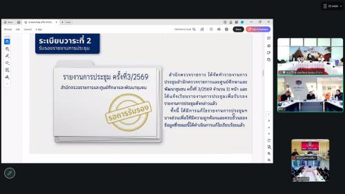 นางศุภลักษณ์ แก้วมณี ผู้ตรวจราชการกรม ปฏิบัติหน้าที่ผู้อำนวยการศูนย์ศึกษาและพัฒนาชุมชนลำปาง พร้อมด้วยผู้อำนวยการกลุ่มงานและหัวหน้าฝ่าย ร่วมการประชุมสำนักตรวจราชการและศูนย์ศึกษาและพัฒนาชุมชน ครั้งที่ 4/2569 ผ่านระบบ Zoom Meetings